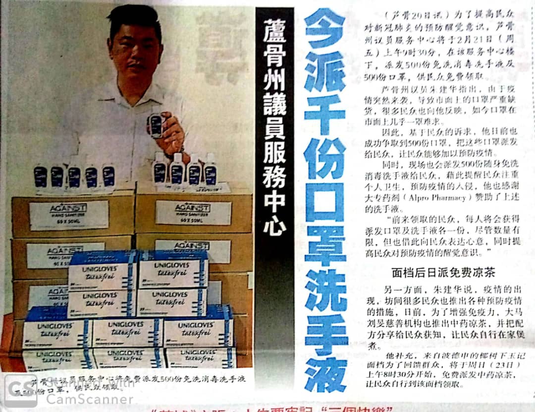 Tajuk :Port Dickson- EXCO Perpaduan,Penerangan dan Integrasi Nasional, YB Tn Choo Ken Hwa bersama Pusat Khidmat Kaunselor Negeri akan mengedarkan 500 kit pembersih kepada orang ramai.