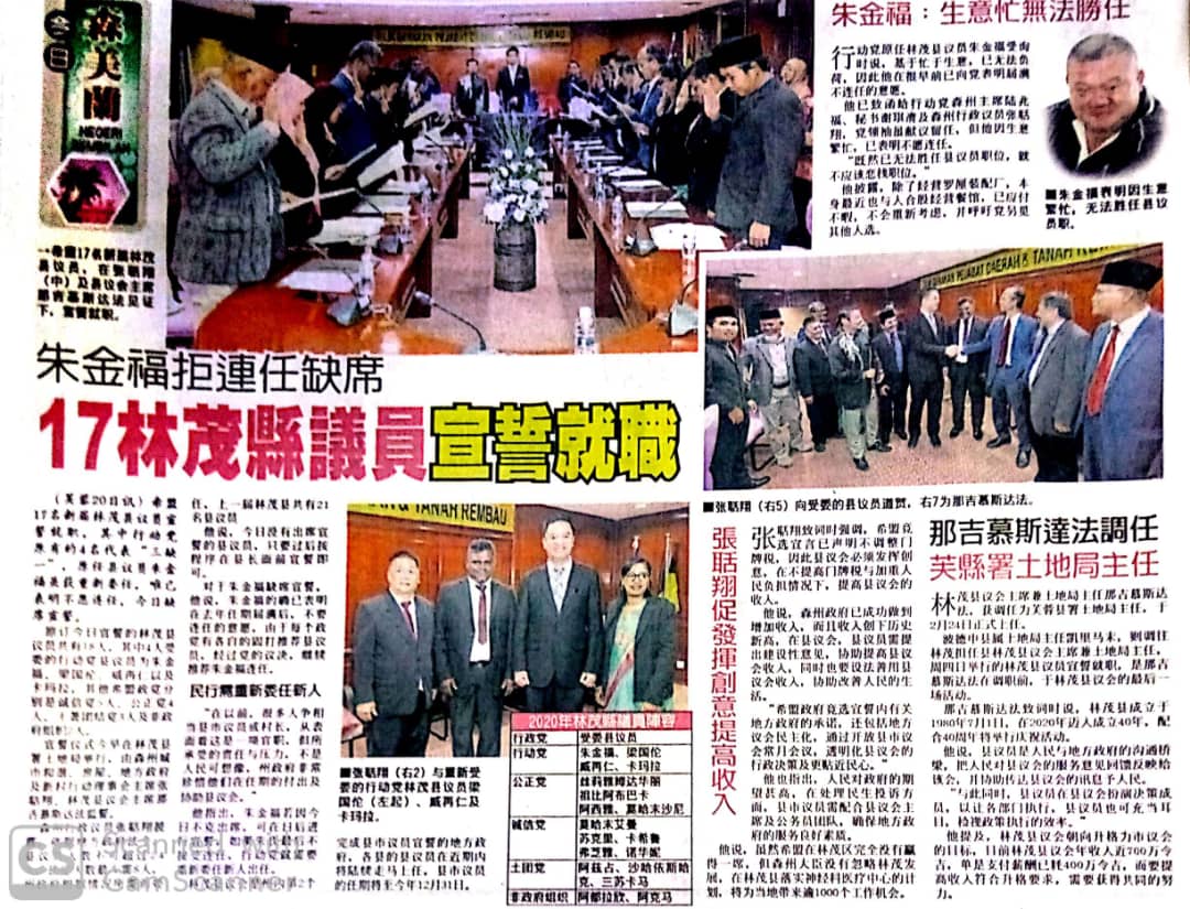 Tajuk :Rembau- Exco Kesejahteraan Bandar,Perumahan Kerajaan Tempatan dan Kampung Baru, YB Tn Teo Kok Seong menghadiri Majlis Angkat Sumpah Penerimaan Jawatan Ahli Majlis di Bilik Gerakan, Pejabat Daerah Rembau semalam.