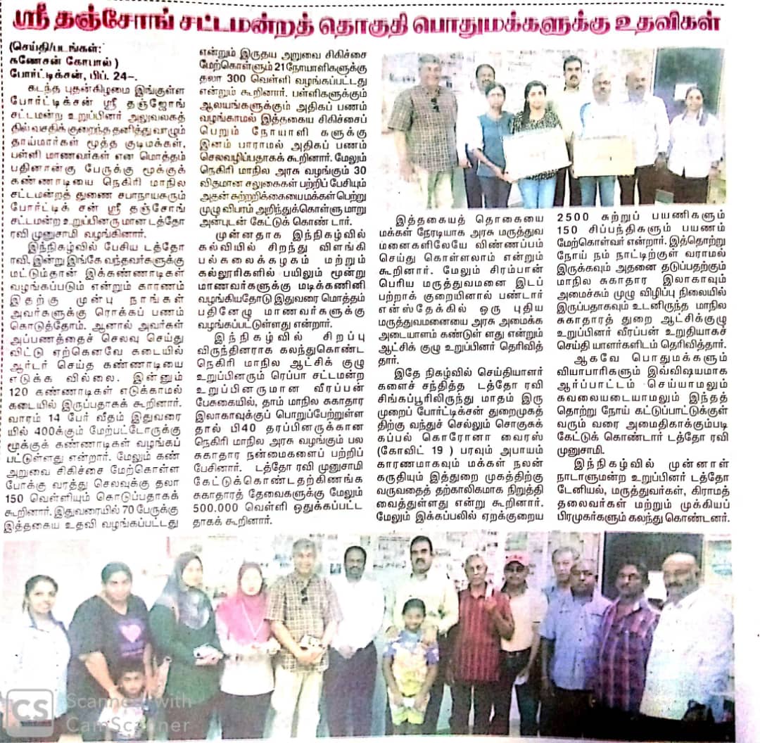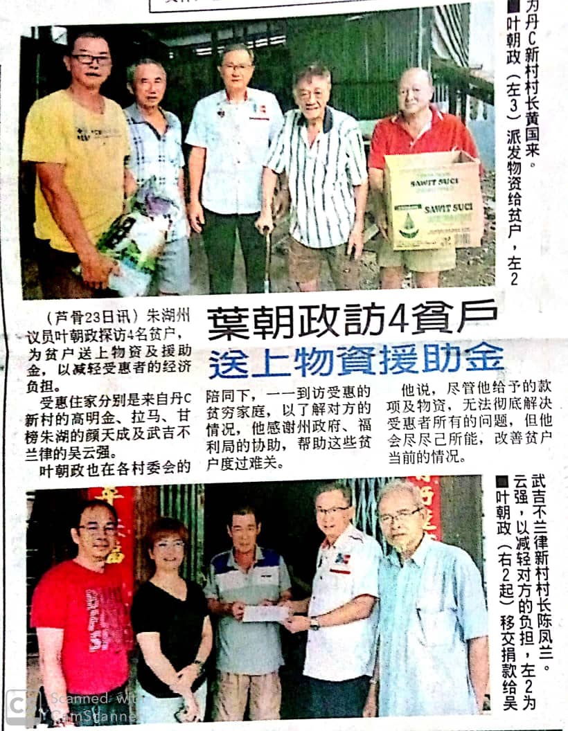 Tajuk :Port Dickson- YB Tn Yek Diew Ching mengadakan kunjungan mesra dan mengagihkan sumbangan kewangan dan keperluan harian kepada keluarga yang memerlukan di kawasan Chuah dan Bukit Pelanduk, Port Dickson kelmarin.