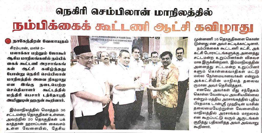 Tajuk :Seremban:MBNS berkata Kerajaan Negeri Sembilan masih stabil dan masih mendapat kepercayaan wakil rakyat dan Exco.