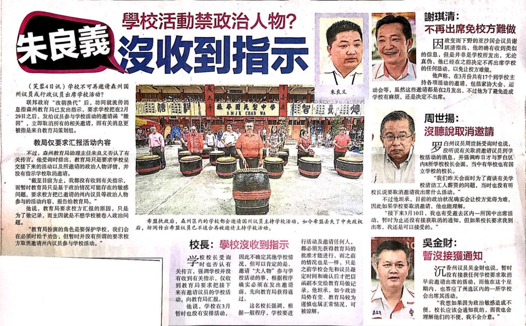Tajuk :Seremban:Pihak sekolah menyatakan bahawa tiada mendapat arahan mengenai penarikan surat jemputan dan juga tiada mendapat berita mengenai larangan memanggil ahli parlimen ataupun ahli DUN ke program sekolah.