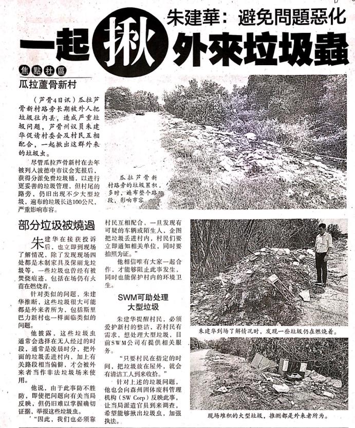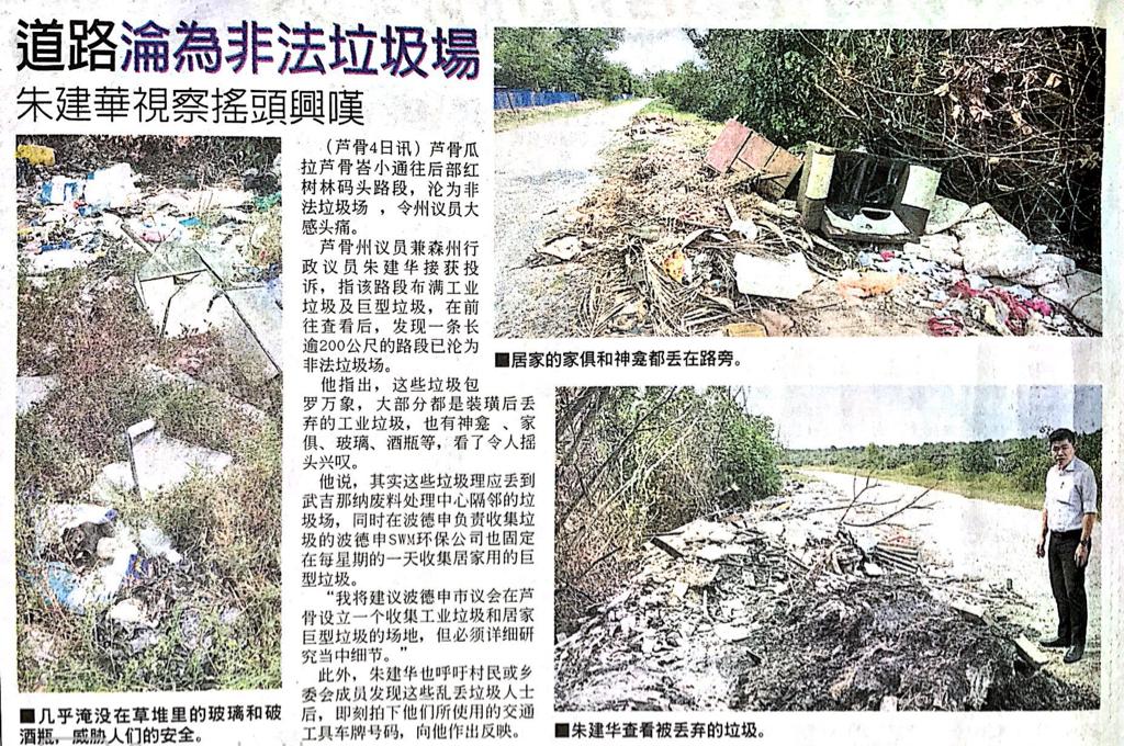 Tajuk :Seremban:YB Tuan Choo Ken Hwa telah turun melihat keadaan di tepi jalan Kampung Baru Kuala Lukut dimana ia dipenuhi dengan sampah sarap dan menurut beliau juga terdapat sampah yang baru dibakar semasa beliau sampai di lokasi tersebut.