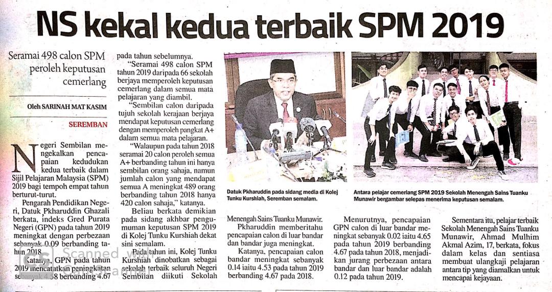 Tajuk :NS kekal kedua terbaik SPM 2019