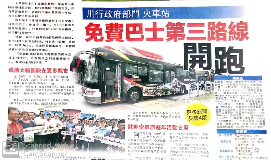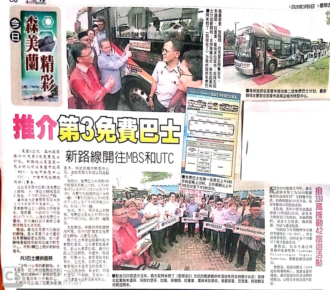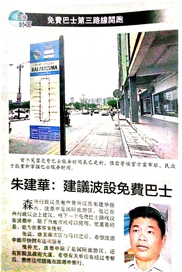 Tajuk :Port Dickson- YB Tn Choo Ken Hwa sedang mengkaji dan berharap agar perkhidmatan bas percuma tersebut dapat dilaksanakan di daerah Port Dickson pula bagi kemudahan orang ramai tambahan negeri itu merupakan titik tumpuan pelancong.