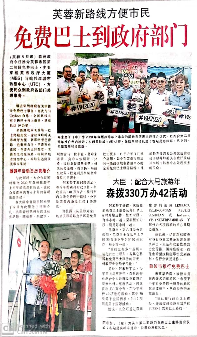 Tajuk :MBNS hadir bagi melancarkan Bas Percuma Bandaraya Seremban 2020 semalam bertempat di UTC,Ampangan.