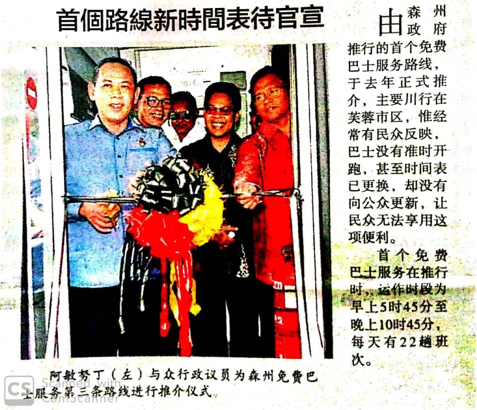 Tajuk :Port Dickson- YB Tn Choo Ken Hwa, EXCO Perpaduan, Penerangan dan Integrasi Nasional menyambut baik langkah kerajaan negeri dan berharap agar perkhidmatan bas percuma tersebut diperluaskan ke daerah Port Dickson pula bagi kemudahan orang ramai
