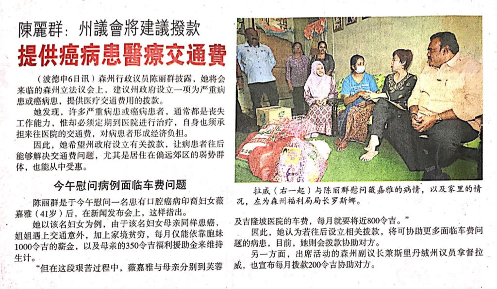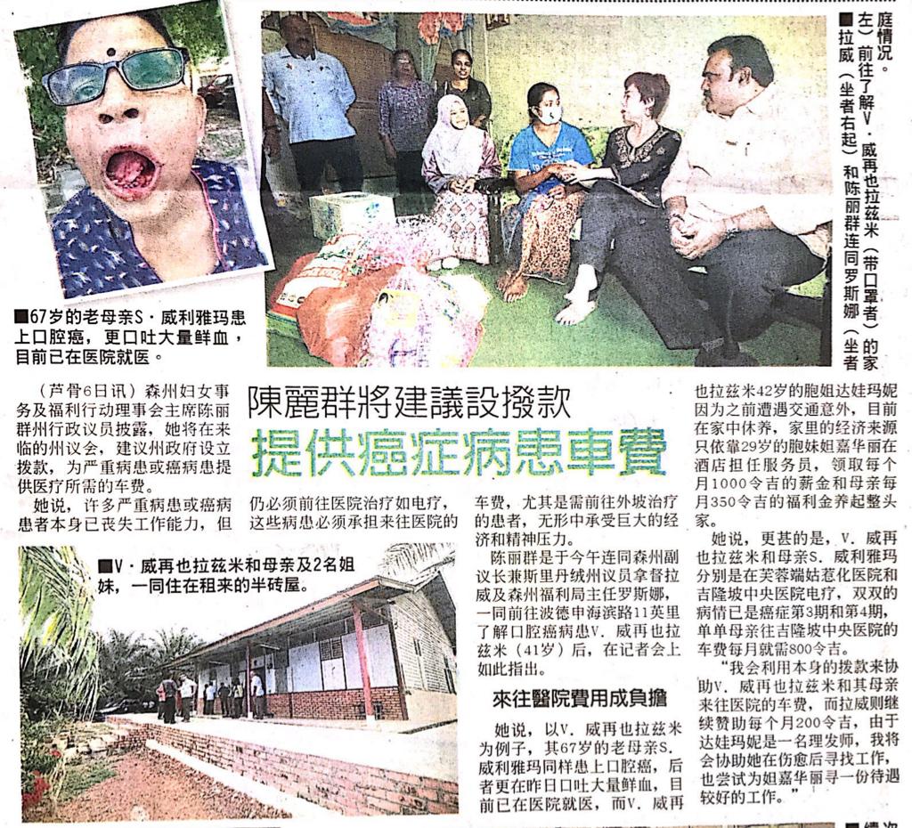 Tajuk :Port Dickson:YB Puan Nicole Tan Lee Koon bersama YB Dato Ravi Munusamy telah mengikuti Program Sumbangan Dana kepada Pesakit berumur 41 tahun keatas yamg menghidapi kanser lidah di Port Dickson.
