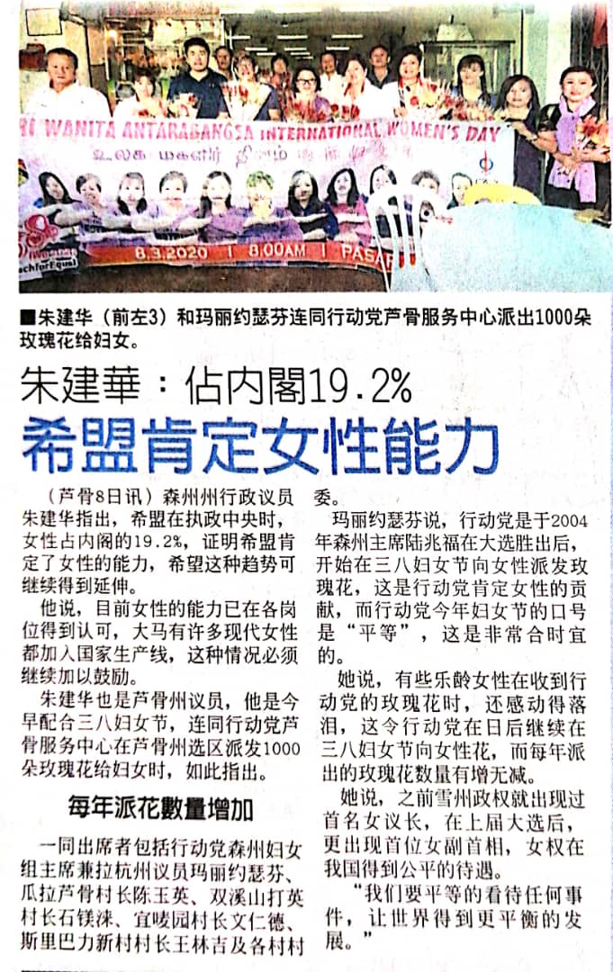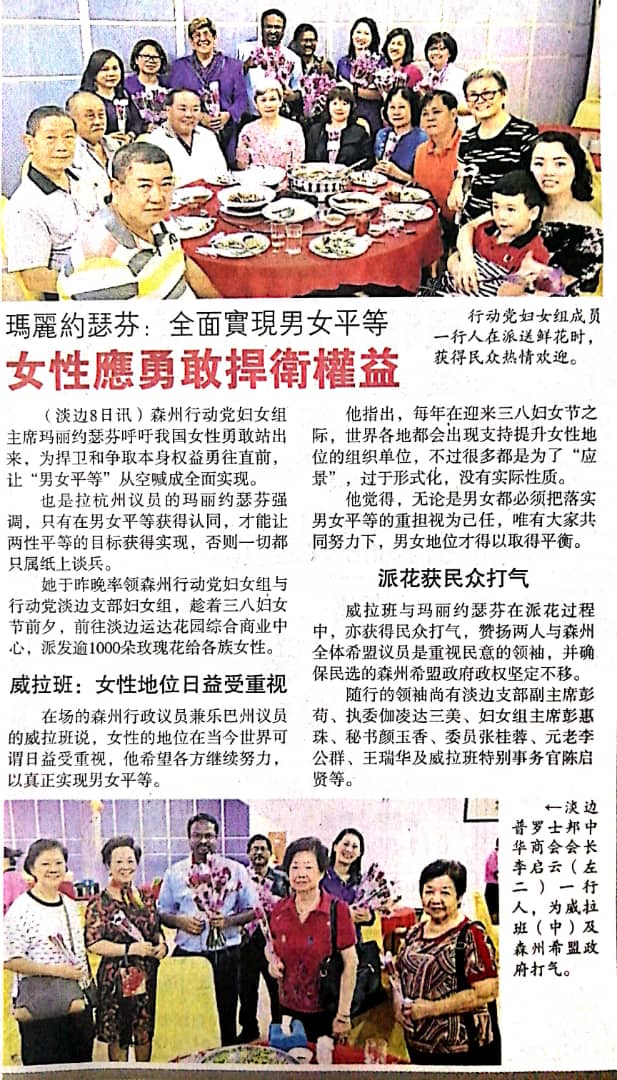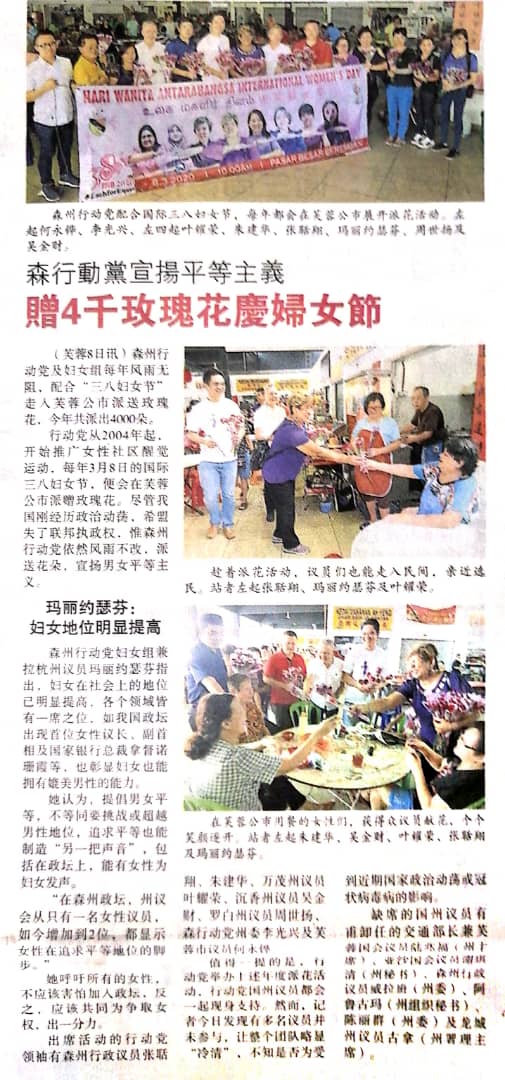 Tajuk :ADUN Lukut, YBChoo Ken Hwa dan ADUN Rahang, YB Mary Josephine Prittam Singh mengedarkan 1,000 kuntuman bunga mawar kepada wanita-wanita duli sekitar Pasar Besar Seremban sempena Sambutan Hari Wanita Antarabangsa.