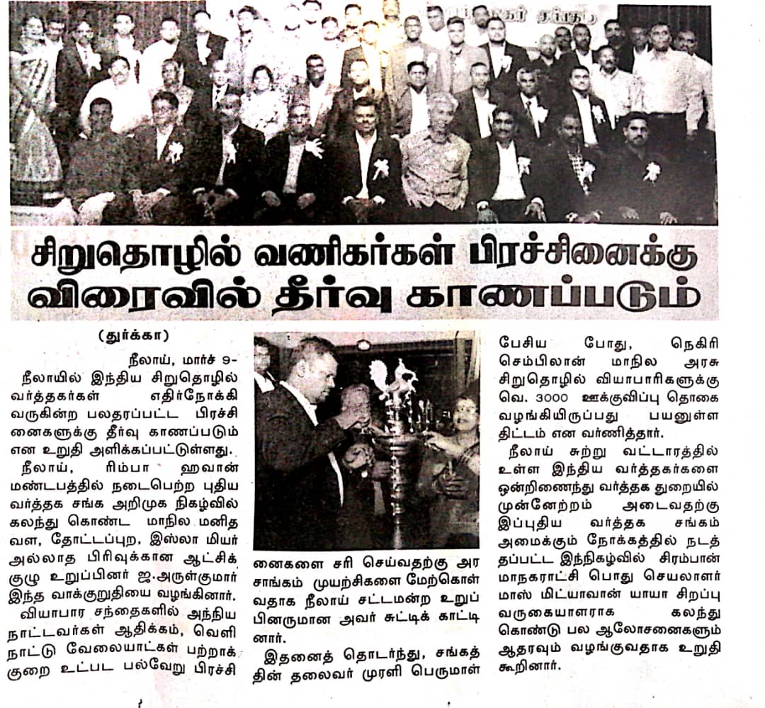 Tajuk :ADUN Nilai, YB Arul Kumar a/l Jambunathan mengadakan pertemuan dengan pengusaha dan peniaga kaum India di Nilai bagi meningkatkan sumber perdagangan serta membincangkan permasalahan berkaitan perusahaan, perniagaan dan perladangan.