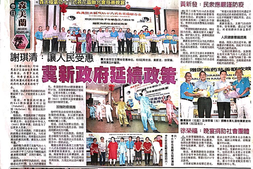 Tajuk :Seremban:YB Tuan Cha Kee Chin telah hadir merasmikan Majlis Makan Malam Persatuan Tai Chi Gong 18 Negeri Sembilan.Turut sama menghadiri majlis YB Tuan Yap Yew Weng.