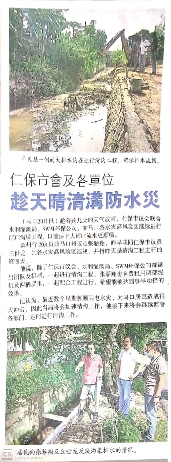 Tajuk :Jempol- YB Tn Teo Kok Seong meninjau kerja-kerja pembersihan longkang dan parit bagi mengurangkan impak banjir kilat di kawasan Bahau.