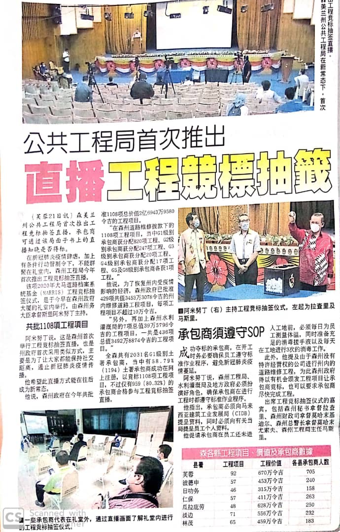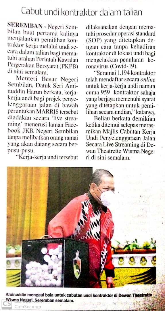 Tajuk :Seremban- MBNS semasa sesi cabutan undi bagi projek-projek penyelenggaraan jalan yang diadakan secara live streaming bertempat di Dewan Theatrette Wisma Negeri , Seremban semalam