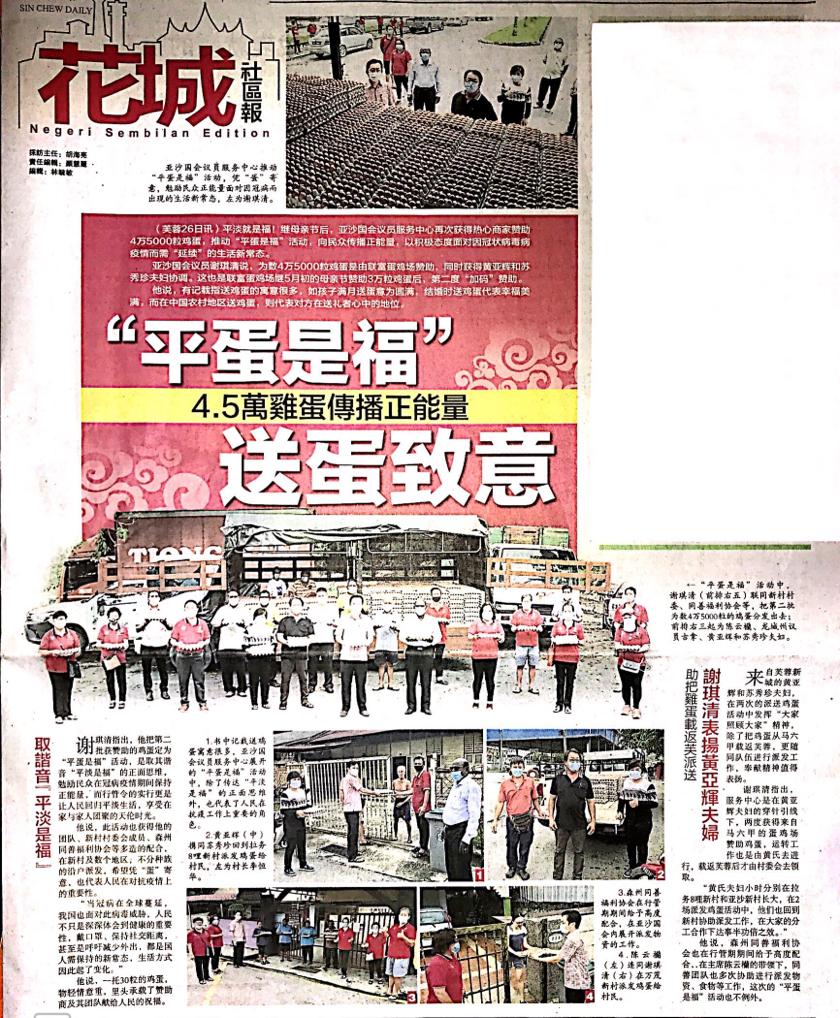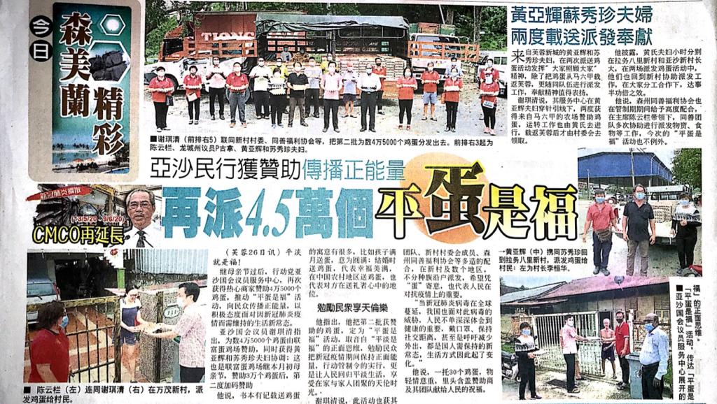 Tajuk :Seremban:YB Tuan Cha Kee Chin dan YB Tuan Guna Sekaren serta pasukannya telah mengagihkan telur ayam sebanyak 45,000 biji kepada wakil-wakil penduduk sekitar Seremban yang telah disumbang oleh Lian Foo Poultry Farm.