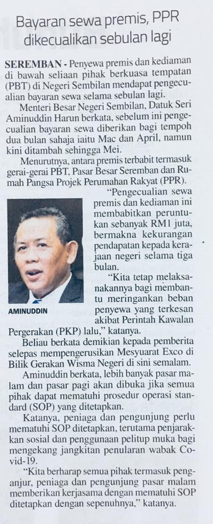 Tajuk :Bayaran sewa premis, PPR dikecualikan sebulan lagi