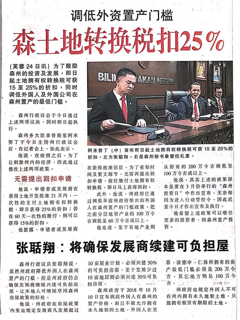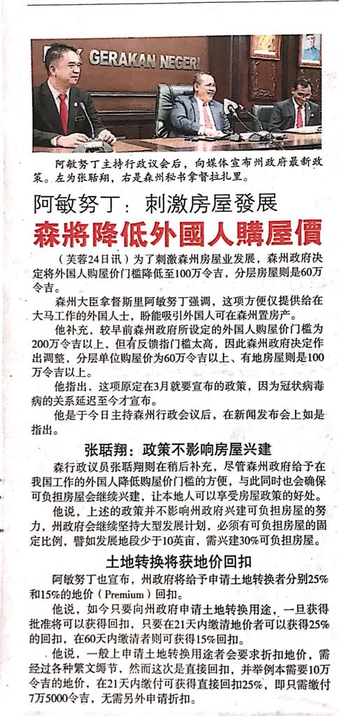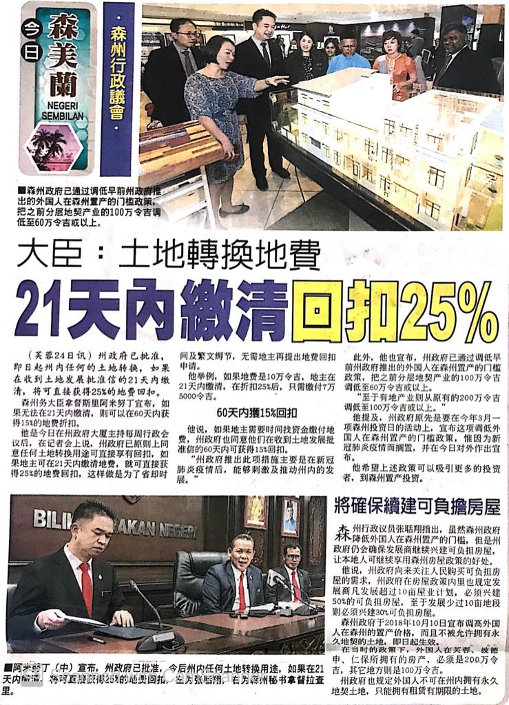 Tajuk :Seremban:Kerajaan negeri memberi potongan 15 dan 25 peratus bagi bayaran premium tanah pertanian yang ditukar syarat untuk dimajukan sebagai projek hartanah.