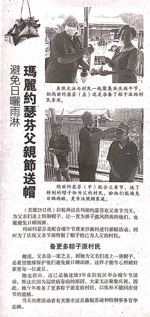 Tajuk :Seremban:YB Puan Mary Josephine Prittam Singh telah mengagihkan kuih chang kepada penduduk di Kampung Baru Rasah sempena sambutan Dragon Boat Festival dan juga Hari Bapa bersama dgn penduduk-penduduk.