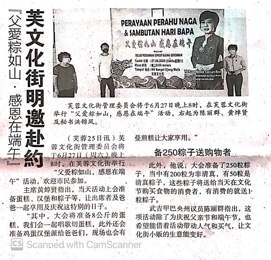 Tajuk :Seremban:YB Puan Nicole Tan Lee Koon telah mengadakan satu sidang akhbar berkenaan dengan Program N9 Sungei Ujong Walk sempena Perayaan Perahu Naga dan Hari Bapa.