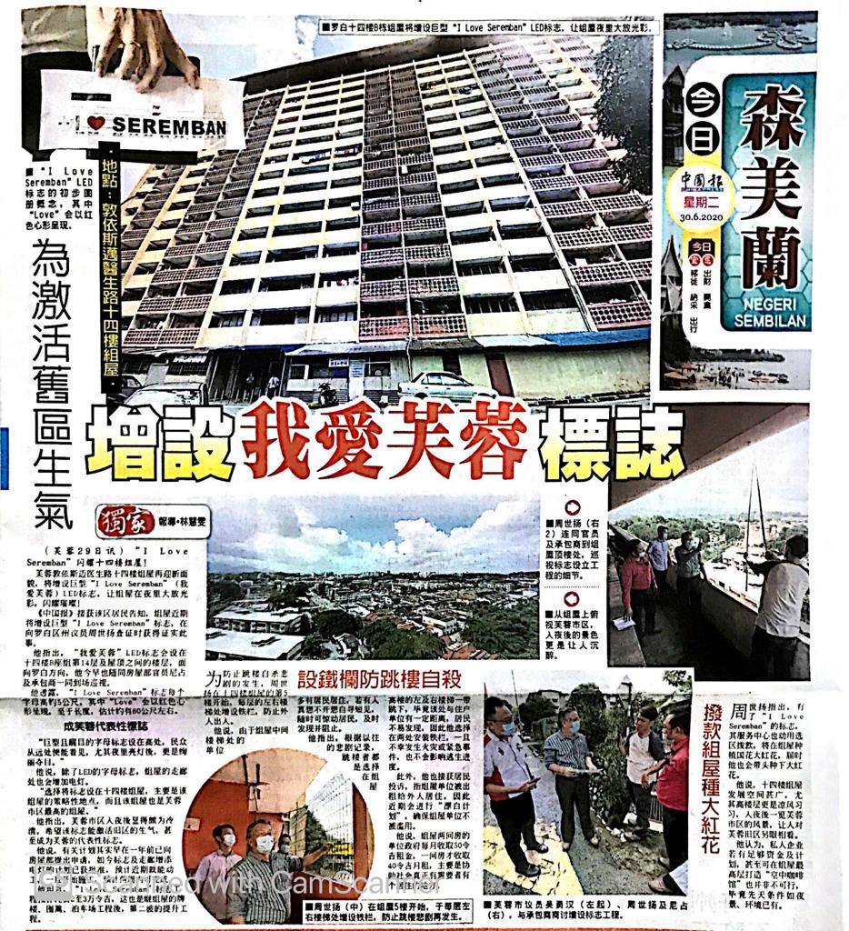 Tajuk :Seremban:YB Tuan Chew Seh Yong telah turun membuat lawatan ke Pangsa Jalan Tun Dr.Ismail untuk projek menempatkan papan tanda LED "I Love Seremban" di tingkat atas rumah pangsa tersebut.