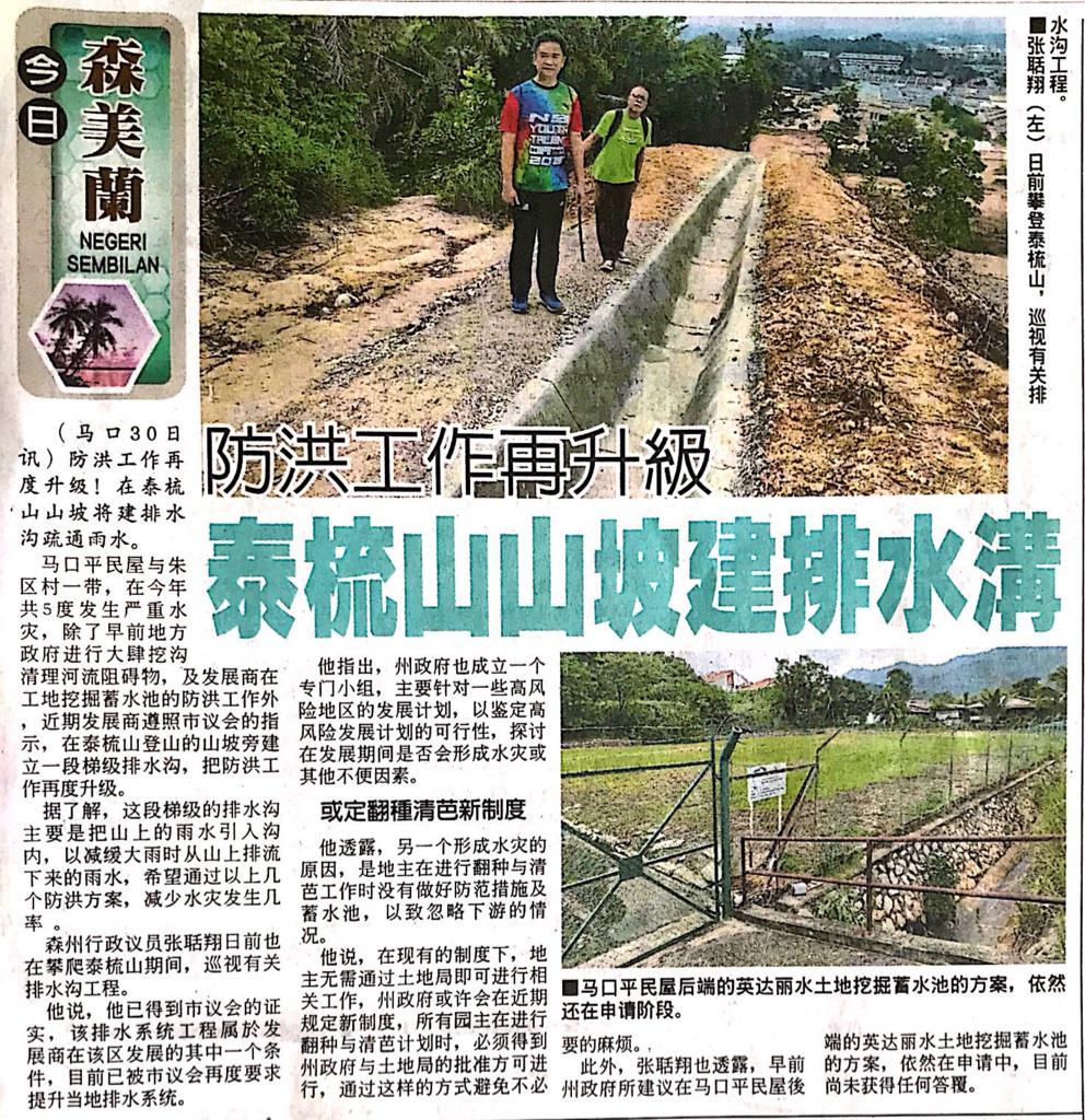 Tajuk :Bahau:YB Tuan Teo Kok Seong telah meninjau projek pembinaan sistem saliran di lereng Bukit Taisho dimana ia dibina bagi mengelakkan banjir melanda di kawasan perumahan yang berdekatan dengan bukit tersebut ketika berlakunya hujan lebat.