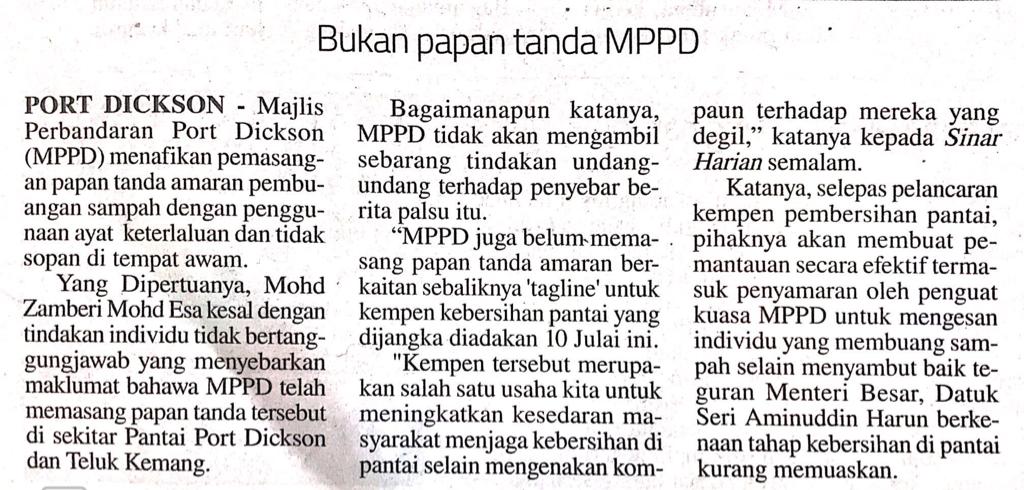 Tajuk :Port Dickson:Bukan papan tanda MPPD.