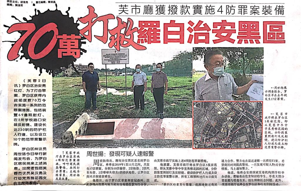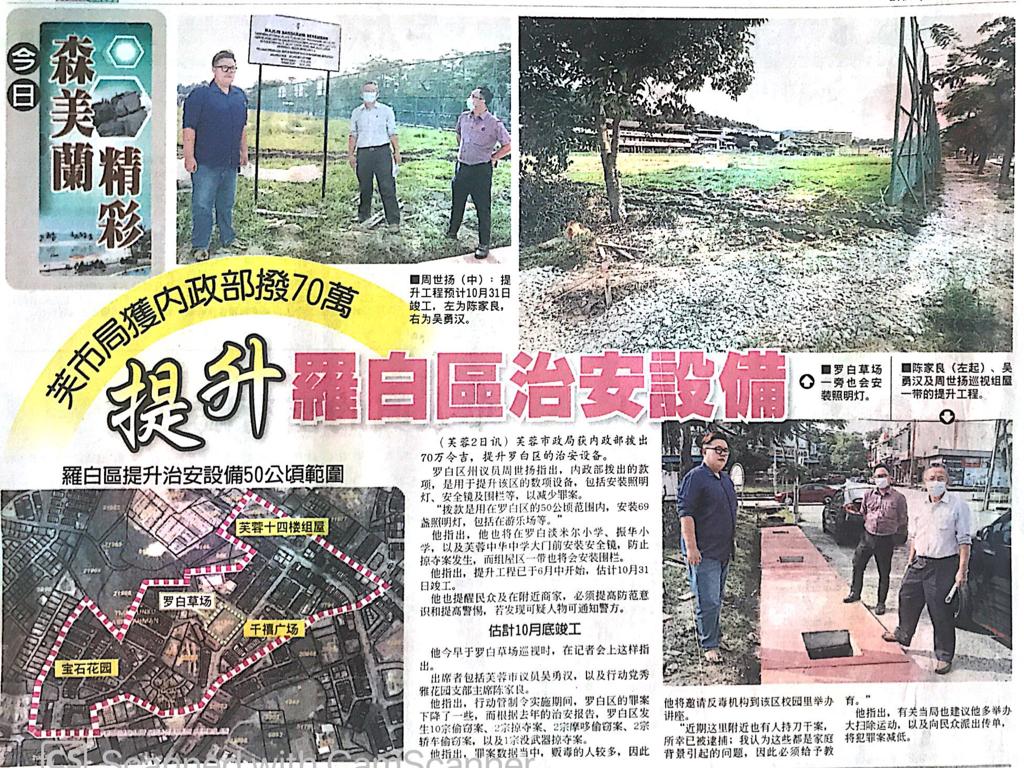 Tajuk :Lobak:YB Tuan Chew Seh Yong menyatakan bahawa Daerah Lobak telah menerima peruntukan sebanyak RM700,000 bagi menaiktaraf peralatan keselamatan di kawasan awam di Daerah Lobak seperti lampu jalan dan pagar.