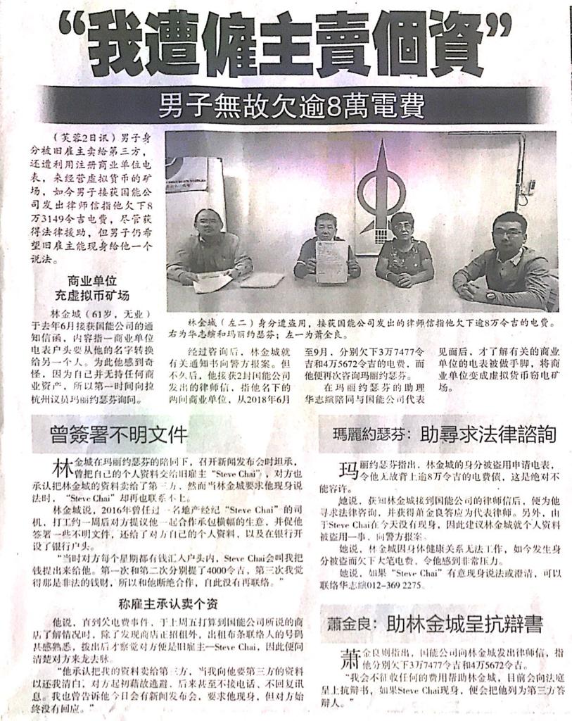 Tajuk :Seremban:YB Puan Mary Josephine telah membuat satu sidang media bersama mangsa yang maklumat peribadinya telah disalahguna oleh individu yang tidak bertanggungjawab sehingga menyebabkan mangsa berhutang dengan TNB sebanyak RM80,000 sejak tahun 2008.