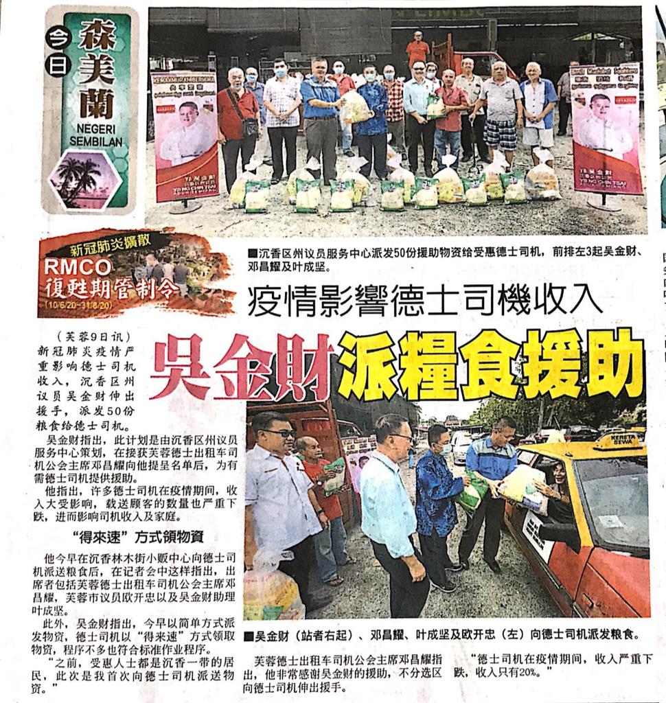 Tajuk :Seremban:YB Tuan Ng Chin Tsai telah mengagihkn bantuan kepada para pemandu teksi yang terkesan punca pendapatan mereka semenjak bermulanya PKP pada bulan Mac yang lalu.