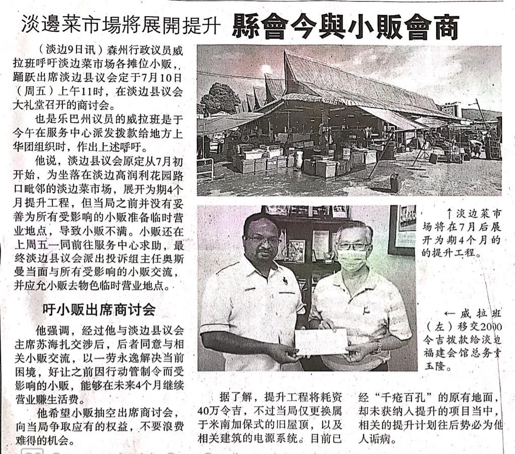 Tajuk :Tampin:YB Tuan Veerapan menyatakan bahawa Pasar Sayur Tampin akan menjalani kerja-kerja penaiktarafan bangunan seperti pengantian bumbung pasar dan juga bekalan elektrik bangunan tersebut.