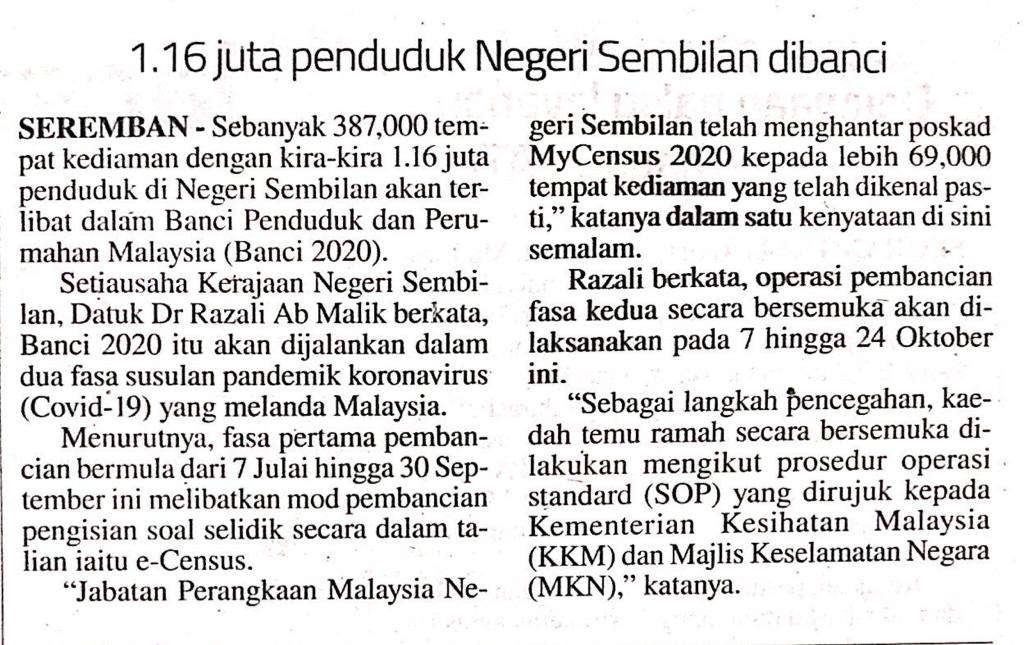 Tajuk :1.15 juta penduduk Negeri Sembilan dibanci
