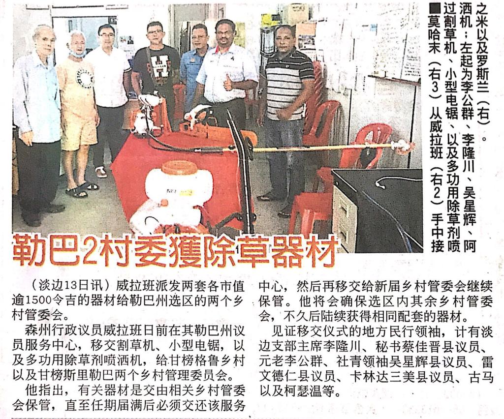 Tajuk :TAMPIN:MPKK Kampung Sri Repah menerima peralatan mesin rumput, mesin penyembur racun rumpai dan mesin gergaji berantai daripada YB Tuan Veerapan.