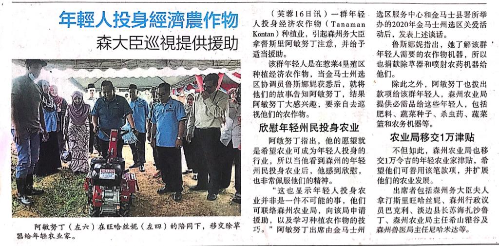 Tajuk :Gemas:Mewakili Kerajaan Negeri, MBNS telah menyampaikan bantuan peralatan serta input pertanian kepada anak-anak muda di Felda Jelai agar projek Jelai Farm mereka terus berkembang maju dan berdaya saing.