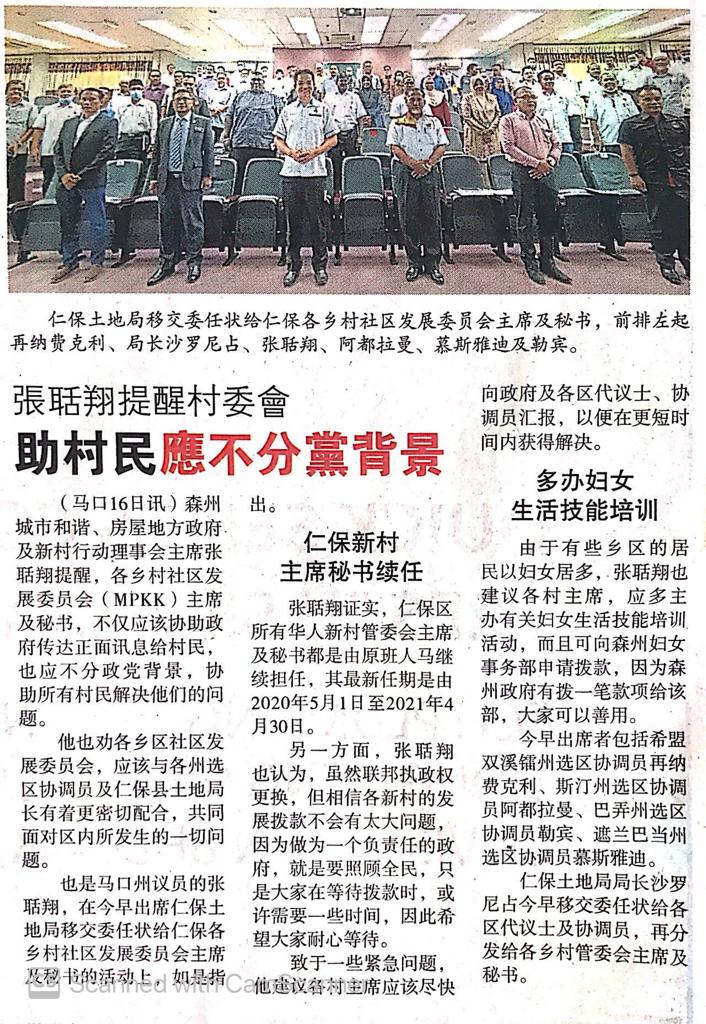 Tajuk :Seremban:YB Tuan Teo Kok Seong telah menghadiri Perjumpaan MPKK Bersama Pejabat Daerah dan Tanah Jempol di Bandar Seri Jempol.