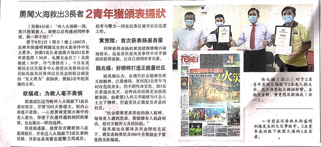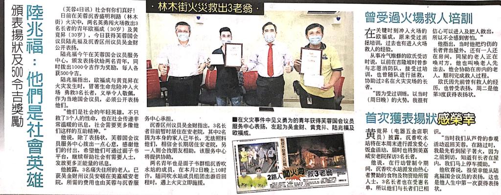 Tajuk :YB Tuan Loke Siew Fook dan YB Ng Chin Tsai telah menyampaikan sijil pujian dan sedikit sumbangan kepada dua orang muda yang berani telah menyelamatkan 3 mangsa kebakaran yang berlaku di Limbok,Seremban.