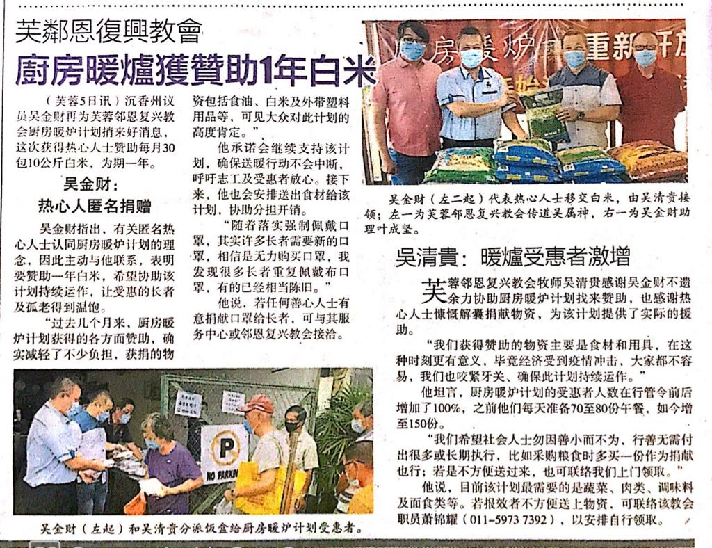 Tajuk :Temiang:YB Tuan Ng Chin Tsai telah mengagihkan bantuan keperluan harian di Temiang Neighbour Grace Assembly kepada penduduk yang kurang berkemampuan dan juga anak-anak yatim di kawasan Temiang.