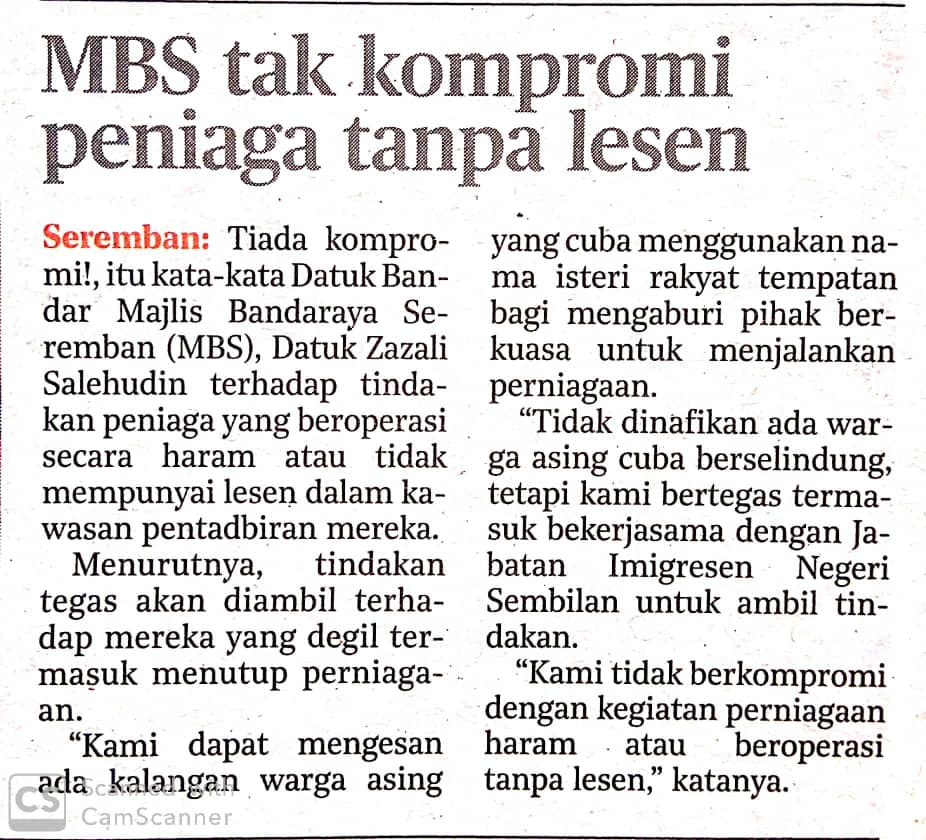 Tajuk :MBS tak kompromi peniaga tanpa lesen