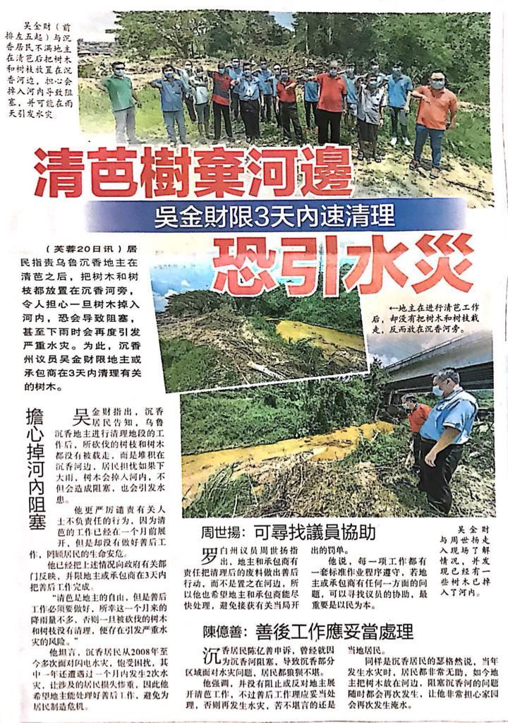 Tajuk :Seremban:YB Tuan Ng Chin Tsai dan juga YB Tuan Chew Seh Yong telah turun meninjau kawasan Sungai Temiang di Kampung Ulu Temiang yang dipercayai telah tercemar.