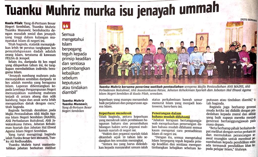 Tajuk :Tuanku Muhriz murka isu jenayah ummah